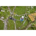 Hak na końcu trzonka ułatwia ściąganie pozostałych na drzewie ściętych gałęzi.