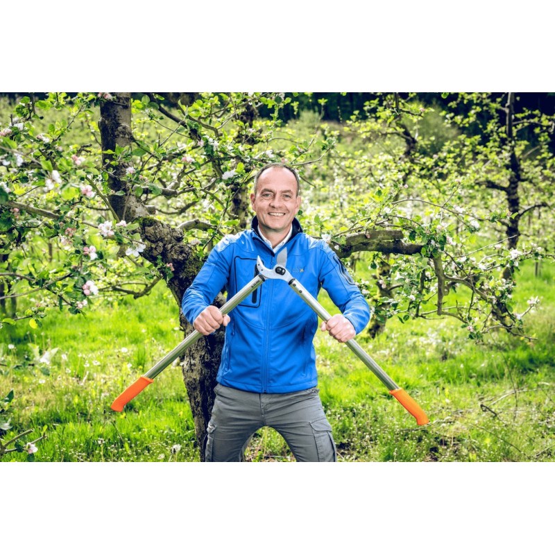 Innowacyjny sekator dwuręczny Lowe 22 to uniwersalny profesjonalny sekator dwuręczny kowadełkowy, o ergonomicznym kształcie, idealny do cięcia grubych gałęzi, które znajdują się poza zasięgiem rąk. Jest wygodny w użyciu.