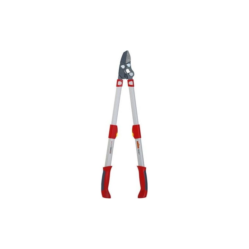 Regulacja teleskopowa długości dźwigni: 650–900 mm Cztery razy mocniejszy, dzięki ulepszonej mechanice głowicy Ergonomiczna rękojeść z gumowym wykończeniem Ostrza pokryte powłoką antyadhezyjną Aluminiowe dźwignie Płaskie śruby Wymienne zużywalne części Regulacja naprężenia noży Amortyzujące uderzenie ograniczniki