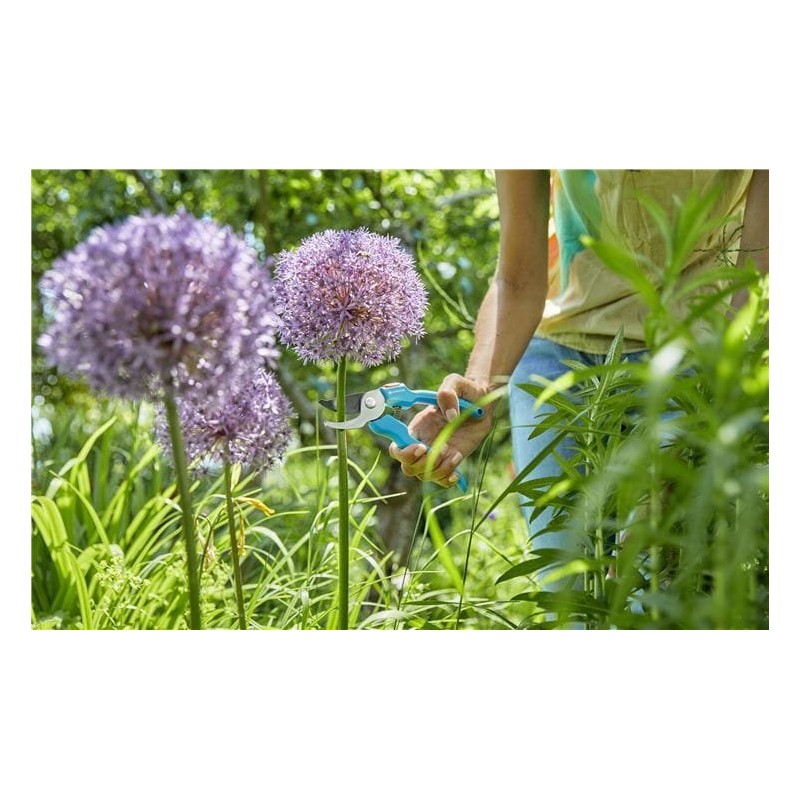 GARDENA Classic nożyczki ogrodowe to kombinacja wszystkich cech dobrych nożyc. Zapewniają precyzyjne cięcie, są nowoczesne i ergonomiczne, a także doskonale nadają się do cięcia kwiatów i pędów. Precyzyjnie ostrzone, nachylone ostrza tnące są pokryte specjalną powłoką antyadhezyjną. Dzięki ergonomicznie ukształtowanym rękojeściom nożyczki idealnie leżą w dłoni. Wygodna rękojeść z dwoma trybami cięcia: twardym i szybkim. Nożyczki wyposażone są w wyciskacz do soku i obcinak do drutu. Jednoręczny zamek ułatwia blokowanie nożyczek i bezpieczne przechowywanie. Classic nożyczki ogrodowe umożliwiają cięcie gałęzi o średnicy do 18 mm.