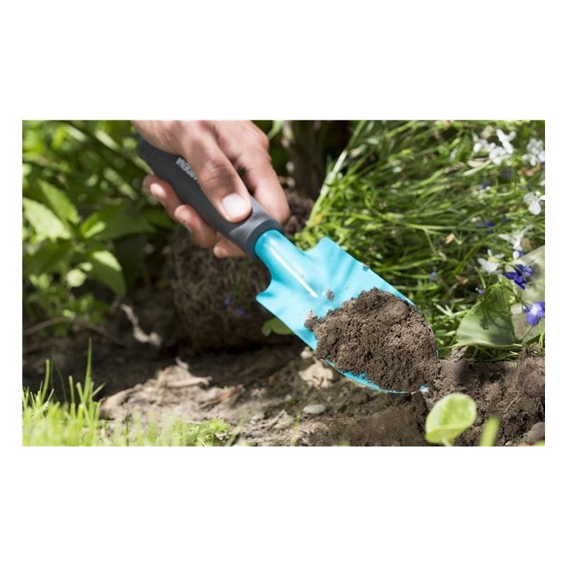 GARDENA tryb do sadzenia kwiatów to idealne narzędzie do sadzenia i przesadzania roślin w ogrodach, skrzynkach oraz dużych donicach. Ergonomiczna rękojeść z miękkimi antypoślizgowymi elementami zapewnia wygodę i komfort podczas pracy. Tryb ma 8 cm szerokości. Wykonany jest z wysokiej jakości stali, pokrytej trwałym tworzywem sztucznym, co gwarantuje długotrwałą wytrzymałość produktu.