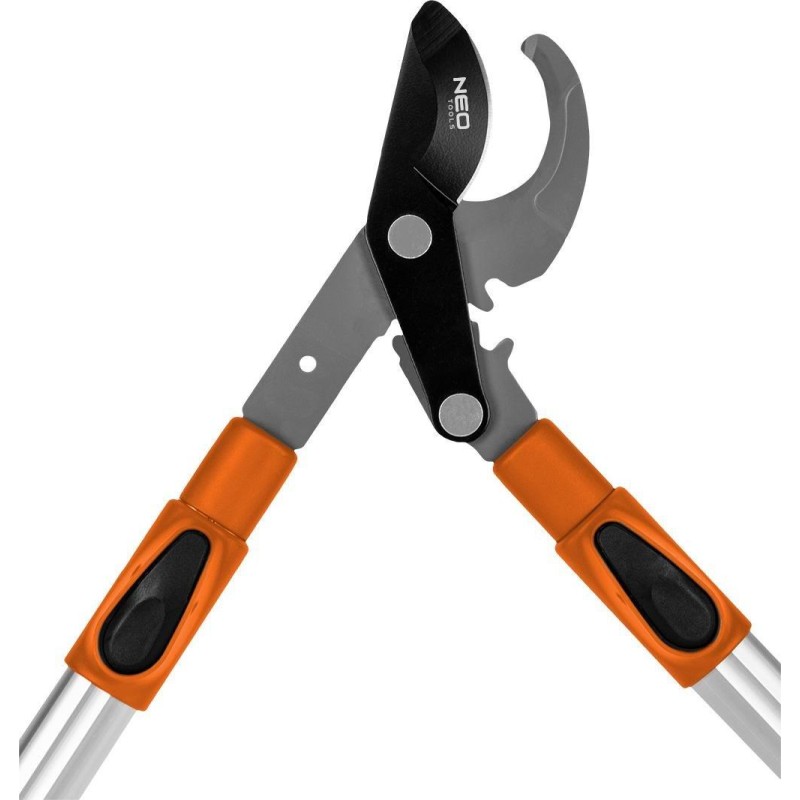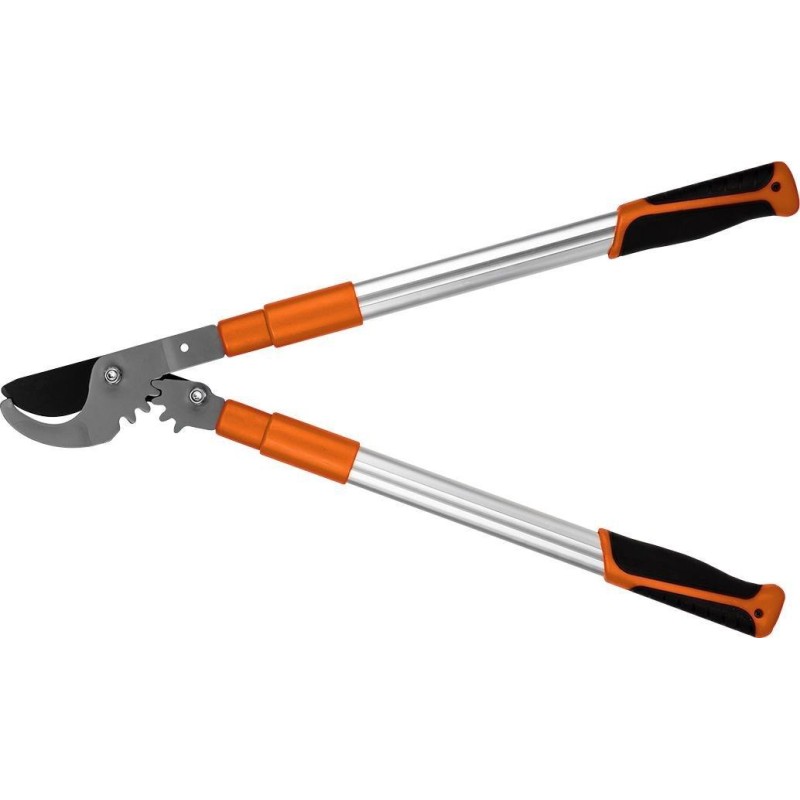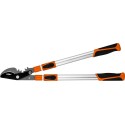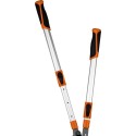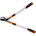 Sekator do gałęzi by-pass, długość całkowita 665 mm, maksymalna średnica cięcia 42 mm, przekładnia zębata zwiększająca moc cięcia o 40%, ostrza z powłoką nieprzywierającą, aluminiowe teleskopowe uchwyty zwiększające zasięg sekatorów do 965 mm, uchwyty antypoślizgowy dwumateriałowy, ostrze do świeżego drewna,