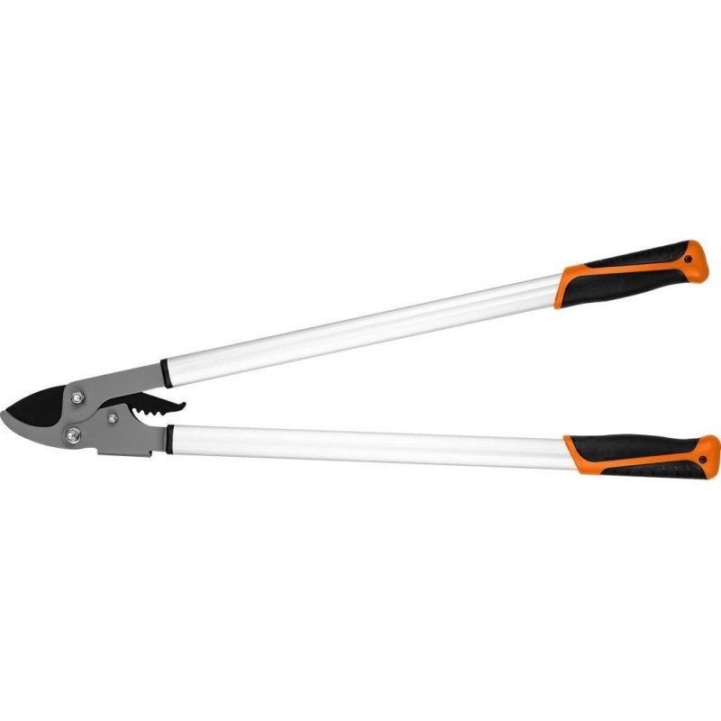 Sekator do gałęzi by-pass, długość całkowita 765 mm, maksymalna średnica cięcia 40 mm, przekładnia rolkowa zwiększa moc cięcia o 60%, ostrza z powłoką nieprzywierającą, aluminiowe ramiona, uchwyty dwumateriałowy antypoślizgowy