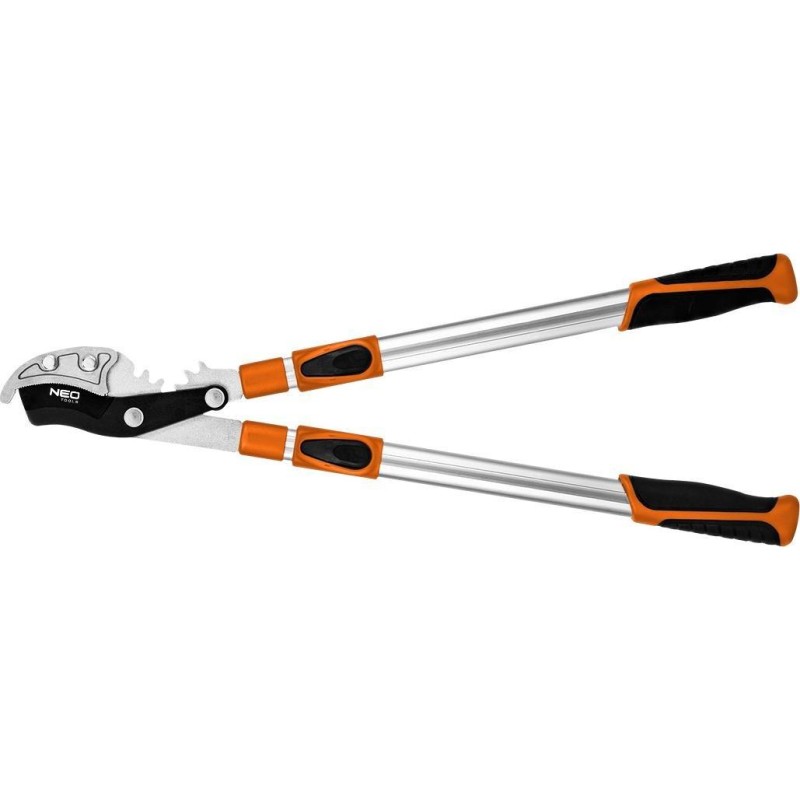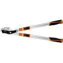 Kowadełkowy sekator do gałęzi, długość całkowita 670 mm, maksymalna średnica cięcia 42 mm, przekładnia rolkowa zwiększa moc cięcia o 60%, ostrza z powłoką nieprzywierającą, aluminiowe teleskopowe uchwyty zwiększające zasięg sekatorów do 970 mm, uchwyty z dwóch materiałów i antypoślizgowe, ostrze kowadła do twardego i suchego drewna,