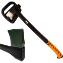 Głowica siekiery wykonana jest z kutej stali węglowej, co zapewnia jej wysoką odporność na uszkodzenia oraz długotrwałą ostrość. Teflonowa powłoka (PTFE) nie tylko ułatwia cięcie, ale także chroni przed rdzą, co znacząco wydłuża żywotność narzędzia. Trzonek z włókna szklanego jest lekki, a jednocześnie niezwykle wytrzymały, co czyni go doskonałym wyborem dla każdego użytkownika.