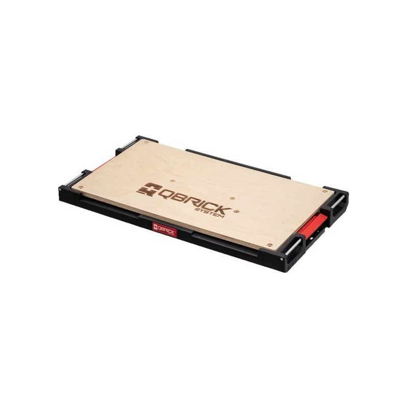 Qbrick System ONE Adapter Multi w topowej wersji Work Platform posiada na wyposażeniu wysokiej jakości sklejkę zabezpieczoną lakierem, dzięki której można łatwo przekształcić adapter w wygodny blat roboczy do prac manualnych lub wykorzystać go do bezpiecznego montażu narzędzi (np.: piły, szlifierki, imadła).