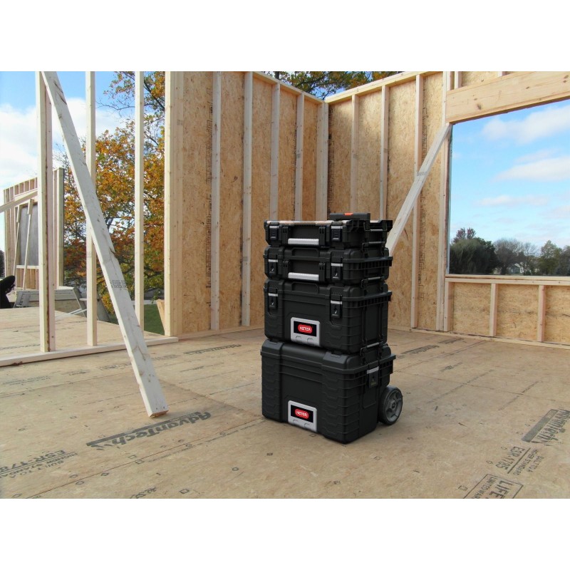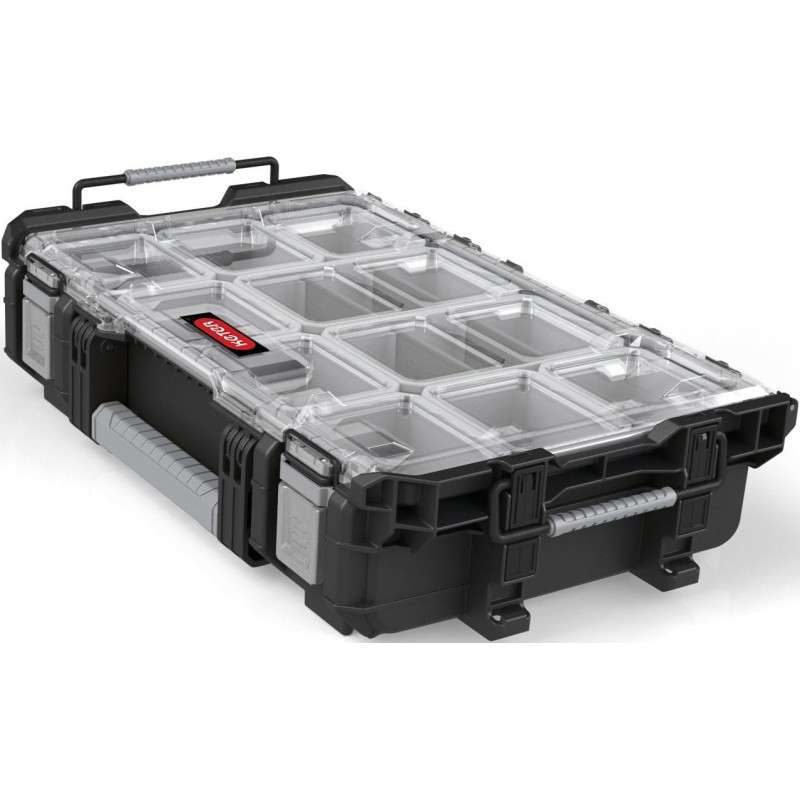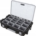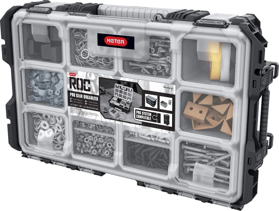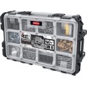 Idealny dla profesjonalistów organizer GEAR oferuje wygodny sposób przechowywania oraz transportu małych części i akcesoriów. Wyposażony jest w 10 wyjmowanych pojemników w dwóch różnych rozmiarach. Przezroczysta pokrywa pozwala na zorientowanie się w zawartości organizera bez konieczności jego otwierania. Może być używany oddzielnie, jednak w połączeniu z pozostałymi skrzynkami z serii GEAR tworzy kompletny system do przechowywania narzędzi.