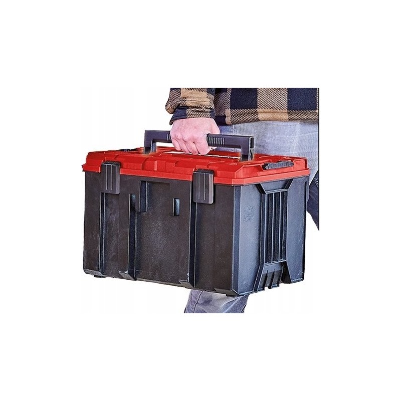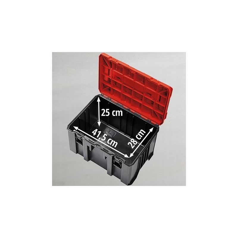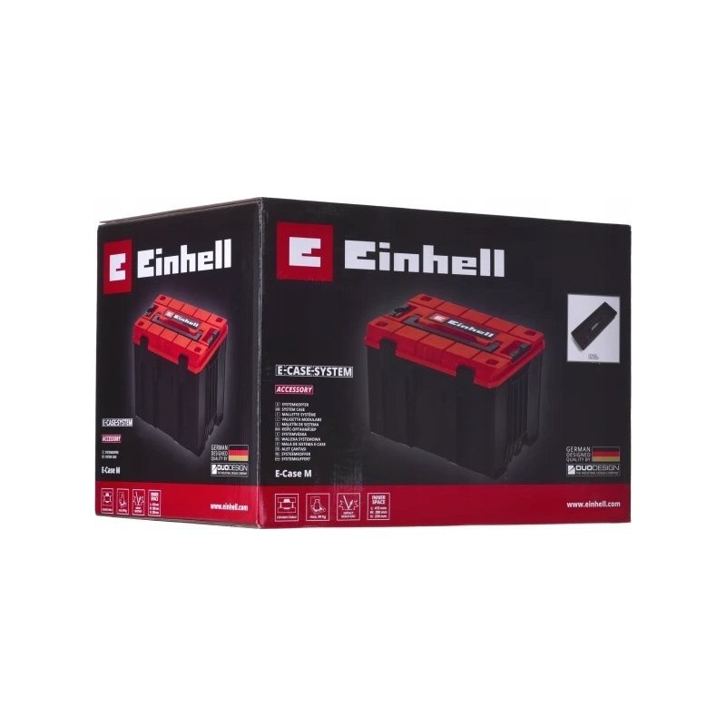 - System modułowy - Einhell E-Case M jest częścią modułowego, a więc praktycznie dającego się łączyć i układać w stosy systemu walizek E-Case.