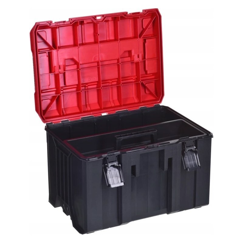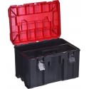 - Ładowanie – Solidna obudowa ma 27 cm wysokości, 44 cm długości i 33 cm szerokości. Nadaje się do transportu maszyn i narzędzi i może być obciążona do 90 kg.