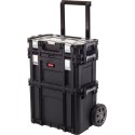 - Unikatowy, trzyczęściowy mobilny zestaw skrzynek to znakomita propozycja dla profesjonalistów i majsterkowiczów, ceniących wygodę i komfort pracy. Konstrukcja modułowa zestawu składa się z trzech elementów, które są połączone stabilnymi i trwałymi metalowymi zatrzaskami. Wbudowane w dolny segment gumowane i solidne kółka oraz wysuwana, teleskopowa rączka umożliwiają swobodne przemieszczanie się z zestawem i korzystanie z niego w różnych warunkach.