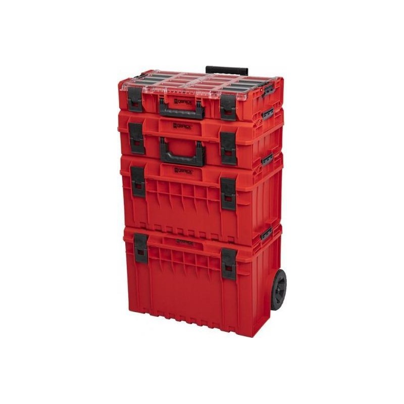 Qbrick System ONE Red Ultra HD Edycja Specjalna dla Profesjonalistów · Ultra wytrzymałość · Unikatowy kolor · Topowe funkcje · Certyfikat IP66 Zestaw QS ONE Red Ultra HD to 4 optymalne moduły: QS ONE Organizer XL – to duży, modułowy organizer wyposażony w 8 kubełkówo zróżnicowanych rozmiarach. Zawartość organizera jest zabezpieczona poliwęglanową pokrywą z wbudowaną uszczelką. QS ONE 200 Profi – to niska skrzynka w linii ONE, która dzięki wyposażeniu w kubełki i regulowane przegrody jest dedykowana do przechowywania kompaktowych elektronarzędzi i narzędzi ręcznych. Produkt posiada certyfikat IP66 QS ONE 350 Technik – to duża skrzynia z wbudowanymi szynami montażowymi w pokrywie, które w połączeniu ze standardowymi ściskami stolarskimi umożliwiają stworzenie wygodnego blatu roboczego. Ten model jest wyposażony w dwie regulowane przegrody, dwie tacki oraz adaptery do łączenia linii QS PRO. Produkt posiada certyfikat IP66 QS ONE Cart – to mobilna skrzynia o dużej pojemności wyposażona w duże koła na metalowej osi, teleskopową rączkę wykonaną z anodowanego aluminium. Dla lepszej organizacji wnętrza skrzynia jest wyposażona w dwie tacki i dwie przegrody. Produkt posiada certyfikat IP66 ...