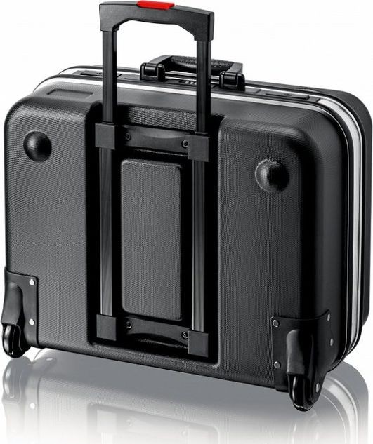 - Walizka posiada teleskopowy uchwyt oraz dwa płynnie działające kółka.