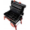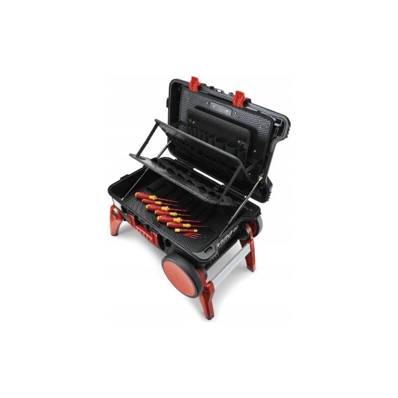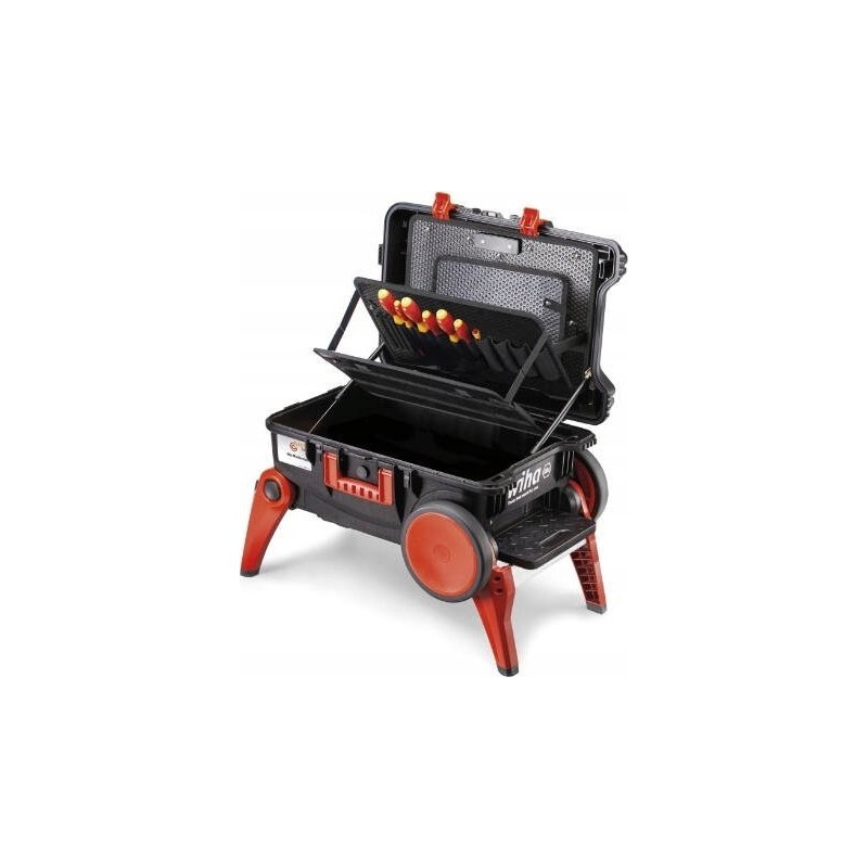 Dzięki wyjątkowo dużym kółkom walizkę można łatwo prowadzić po nierównym terenie lub po schodach. Rozkładane nóżki umożliwiają zastosowanie walizki jako antypoślizgowego stopnia. Ponadto podwyższona pozycja umożliwia wygodne wyciąganie narzędzi, chroniąc tym sposobem kręgosłup. V-kształtne wyżłobienie z podziałką w pokrywie walizki ułatwia odcinanie np. kanałów kablowych na miejscu montażu.