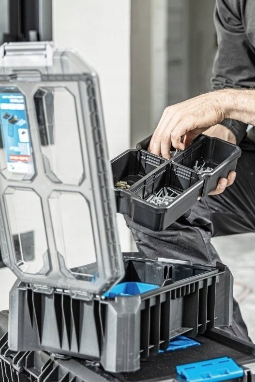 Jego kompatybilność z innymi elementami systemu modułowych skrzynek sprawia, że można go łatwo integrować z różnymi rodzajami skrzynek, co zwiększa elastyczność i funkcjonalność całego systemu. Dzięki temu można dostosować organizację narzędzi do własnych potrzeb i preferencji, co z kolei przekłada się na większą efektywność pracy.