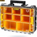 Skrzynia DeWalt z przezroczystą pokrywą i organizerami (2 duże i 5 małych) służy do przechowywania akcesoriów i innych drobnych materiałów. Specjalna konstrukcja sprawia, że samoistne przemieszczenie organizerów staje się niemożliwe. Amerykański producent zadbał o funkcjonalność swojego produktu, stąd zainstalowanie specjalnych zaczepów, pozwalających na modułowe łączenie ze sobą skrzyń typu TSTAK.