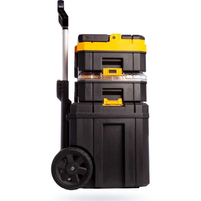 Mobilny zestaw skrzyń wieża na kółkach DeWALT DWST1-81049 składa się z 3 walizek TSTAK SYSTEM 2.0 :