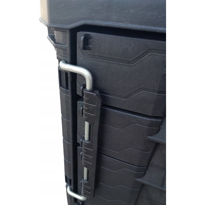 Funkcjonalny system łączenia skrzynek za pomocą bocznych uchwytów umożliwia pełną kompatybilność ze wszystkimi skrzynkami z linii Pro Gear 1.0 oraz ROC Pro Gear 2.0, oraz wcześniejszym systemai Erabauer i Magnusson umożliwiając elastyczne dostosowanie systemu przechowywania narzędzi do indywidualnych potrzeb.