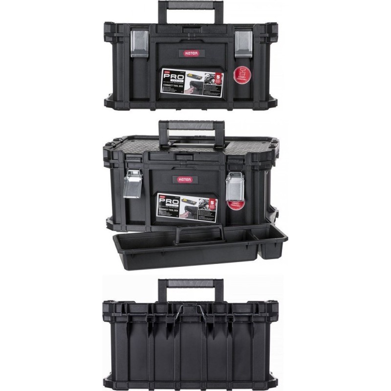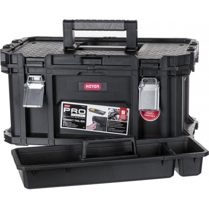 Skrzynka narzędziowa z możliwością podłączenia: modułowa walizka narzędziowa może być łączona z wózkami narzędziowymi marki Keter (dostępnymi oddzielnie). Chcesz przenieść swoją skrzynkę narzędziową, by wykonać następny projekt? Po prostu ułóż ją na swoim systemie Connect i gotowe.