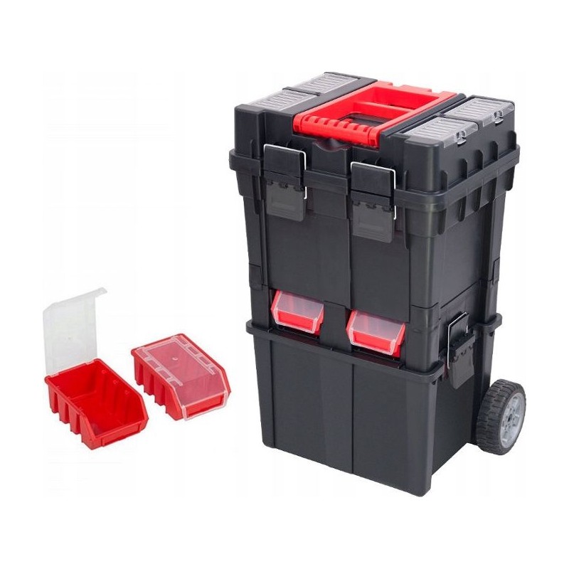 - Pojemny i mobilny warsztat narzędziowy wykonany został z wytrzymałego tworzywa sztucznego
