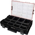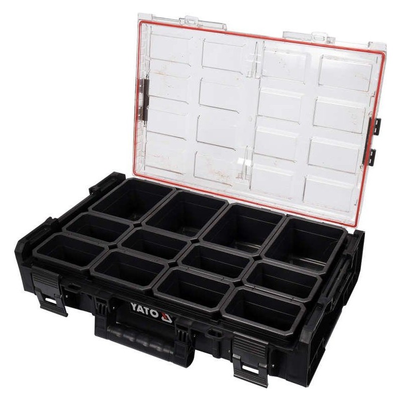 Pozwala na wygodne przechowywanie i transport drobnych elementów. W systemie skrzyń YATO stanowi organizer bazowy, umożliwiający łączenie skrzyń z kolejnymi organizerami.