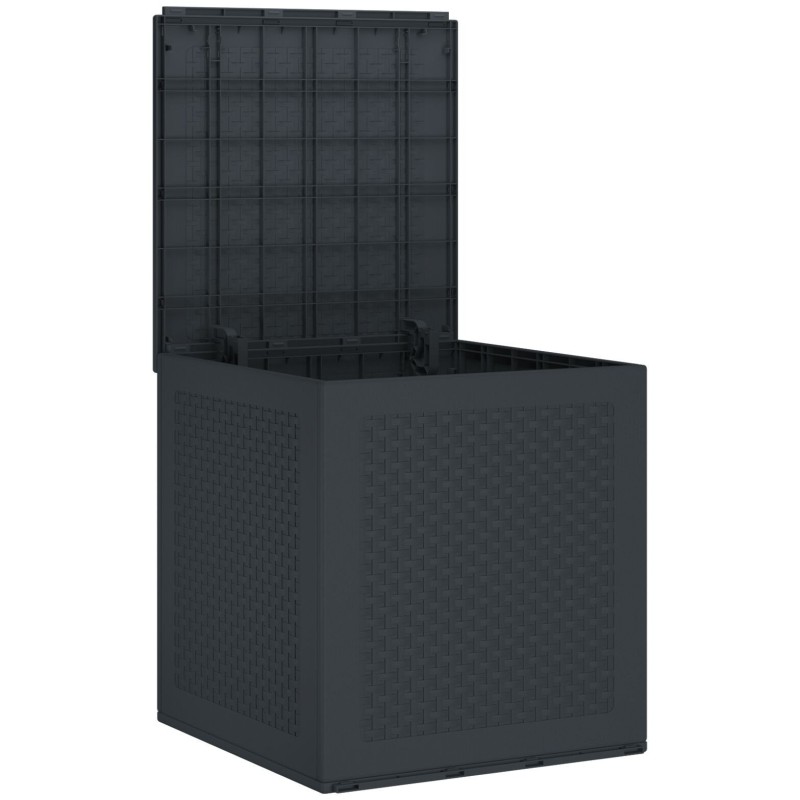 Ta antracytowa skrzynia magazynowa to świetne rozwiązanie do organizacji przestrzeni zewnętrznych. Zrobiona z mocnego plastiku syntetycznego, który wytrzymuje różne warunki atmosferyczne. Dzięki ładnemu wyglądowi i matowemu wykończeniu pasuje do balkonu albo garażu, łącząc styl z funkcjonalnością.
