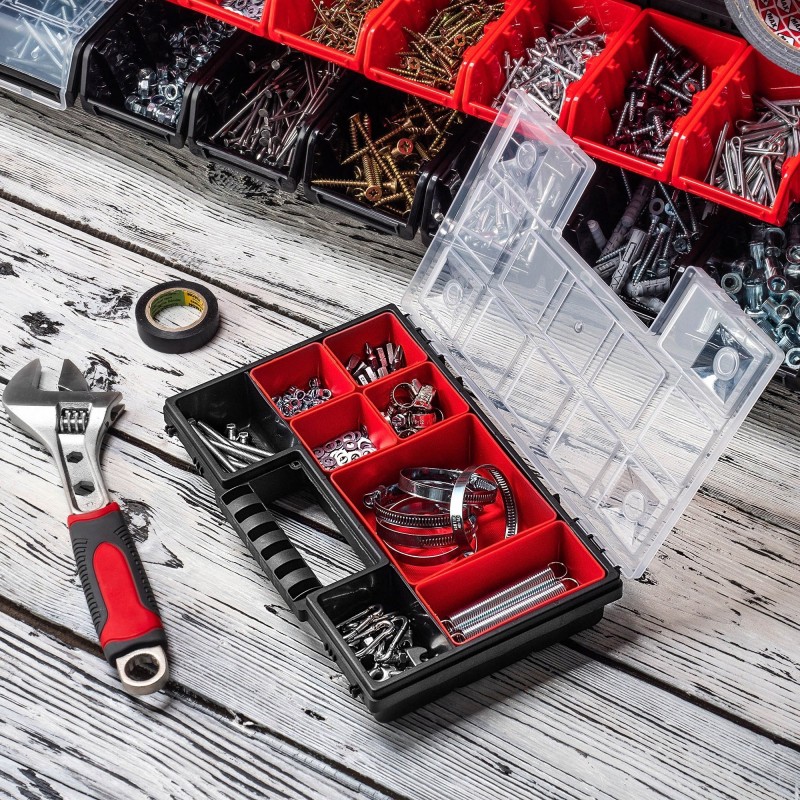 Dzięki niemu możesz posegregować niezbędne akcesoria warsztatowe i drobne narzędzia w jednym miejscu! I co ważne, w razie napraw nie musisz brać całej skrzynki! Możesz wyciągnąć tylko to, co potrzebujesz dzięki wyjmowanym szufladkom. Sprawdź jak wiele korzyści może przynieść organizer narzędziowy!