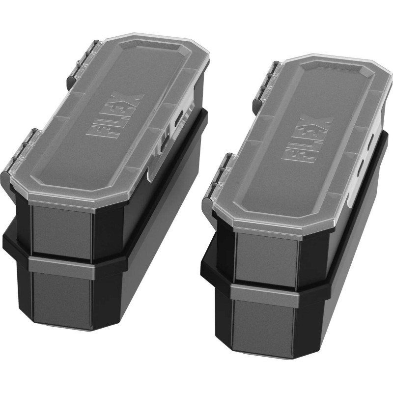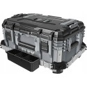 Skrzynki wykonane są z odpornego na uderzenia tworzywa sztucznego ze wzmocnionymi aluminium narożnikami i chronią narzędzia i akcesoria przed najtrudniejszymi warunkami na placu budowy.
