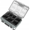 W małym mudulowanym organizerze z przezroczystą pokrywą można przechowywać drobne części, takie jak pudełka z końcówkami, śruby itp.