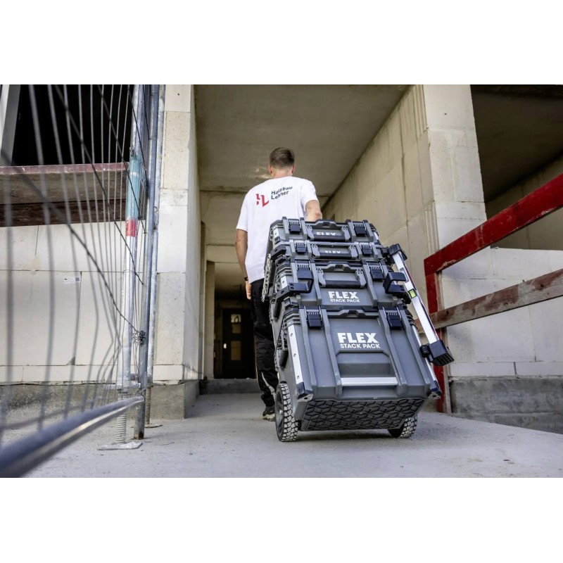 Dzięki solidnemu systemowi przechowywania i transportu STACK PACK, narzędzia i akcesoria mogą być łatwo transportowane na plac budowy.