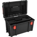 - Szereg zabezpieczeń: twarda pokrywa zewnętrzna charakteryzuje się odpornością na wstrząsy, a szczelne zamknięcie chroni przed wodą. Możliwość zamknięcia walizki zwiększa poziom zabezpieczeń.