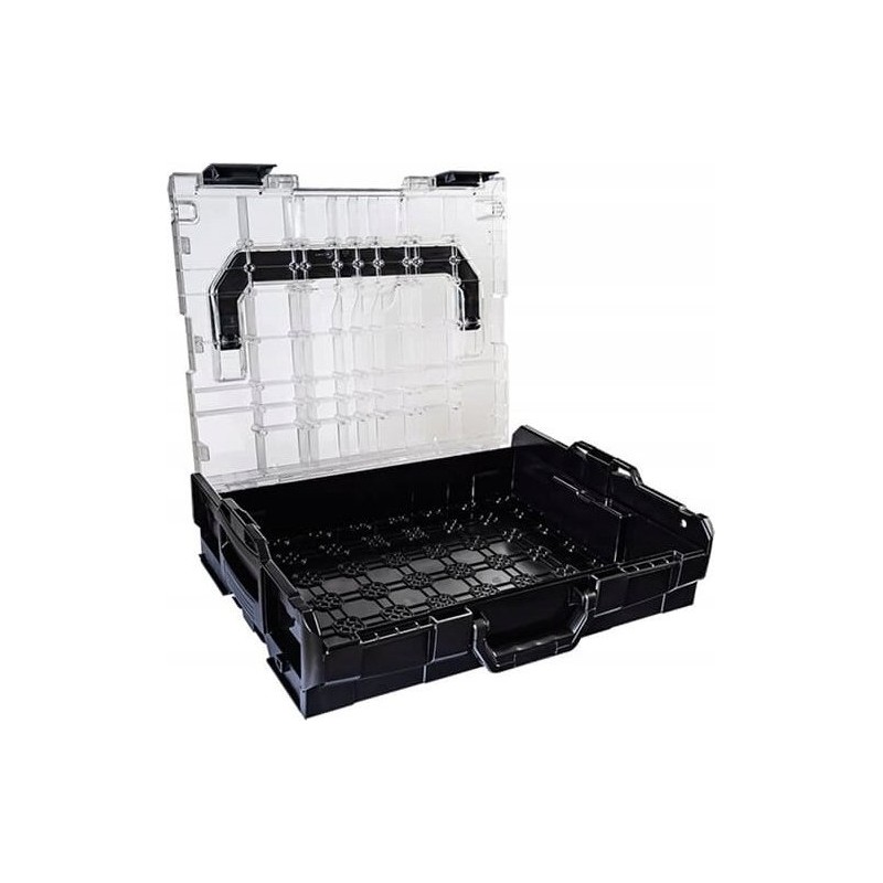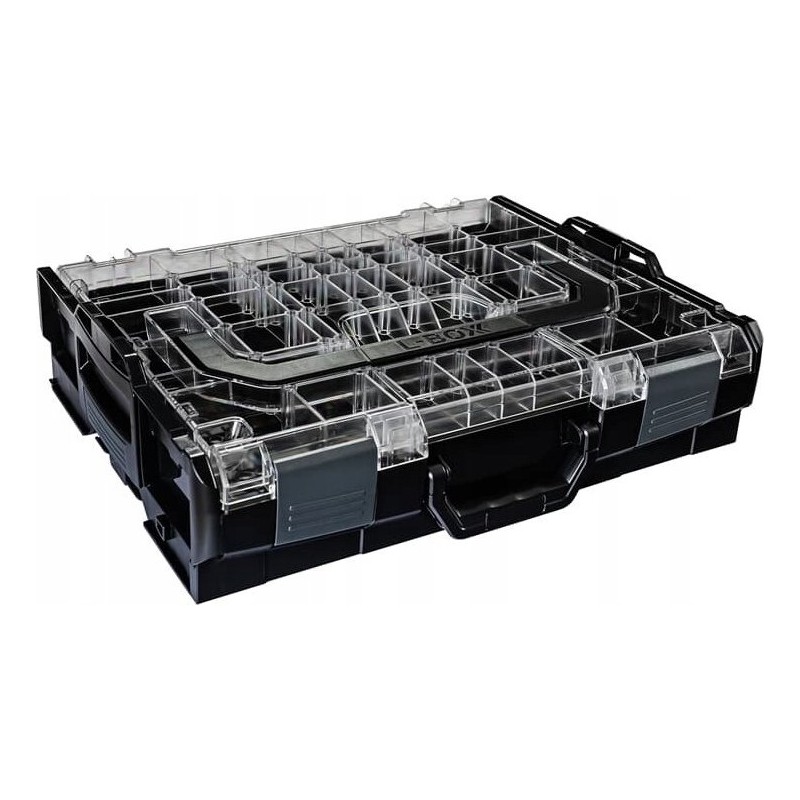 Transparentna pokrywa L-BOXX 102 została zaprojektowana w taki sposób, aby wsuwane pudełka w każdej kombinacji oraz wkładki na drobne części z 5 i 8 korytkami zlicowały się z pokrywą. Oznacza to, że małe części, takie jak śruby, nity czy kołki, można transportować bez mieszania.