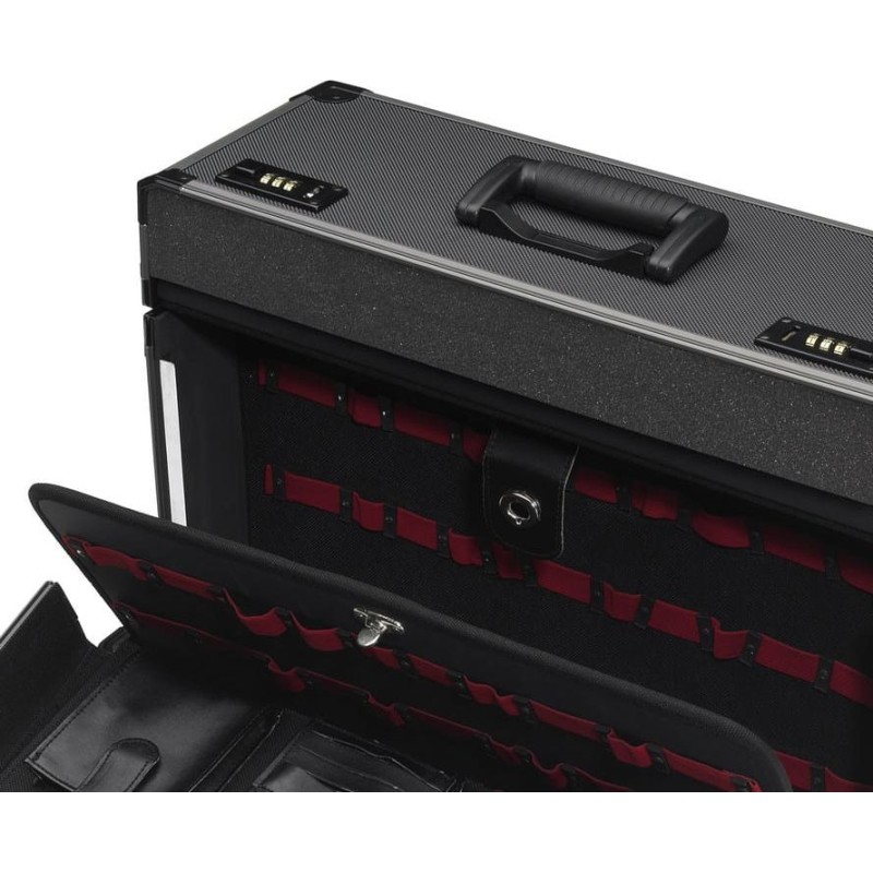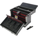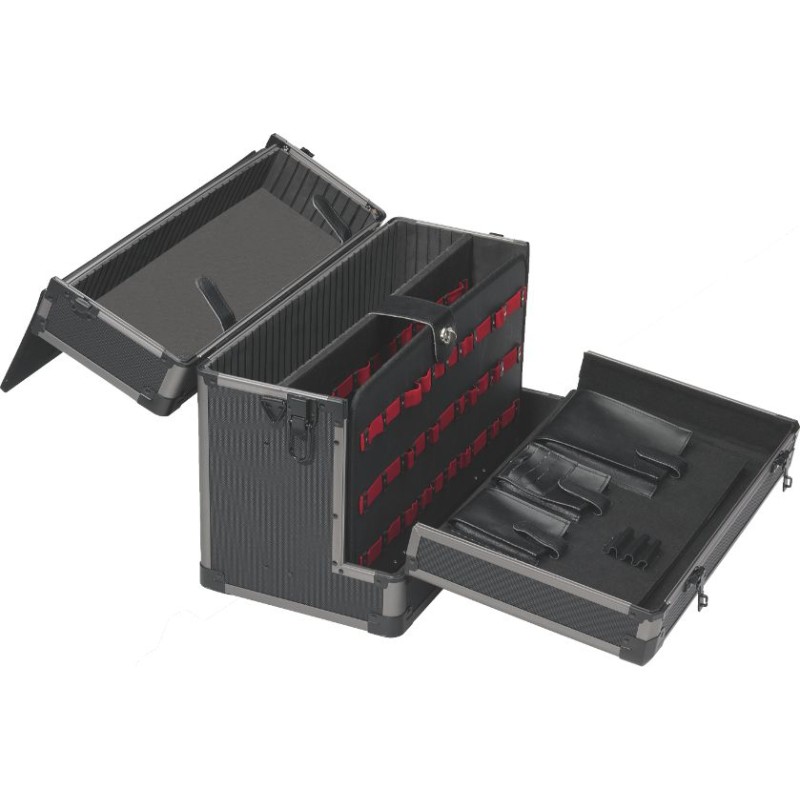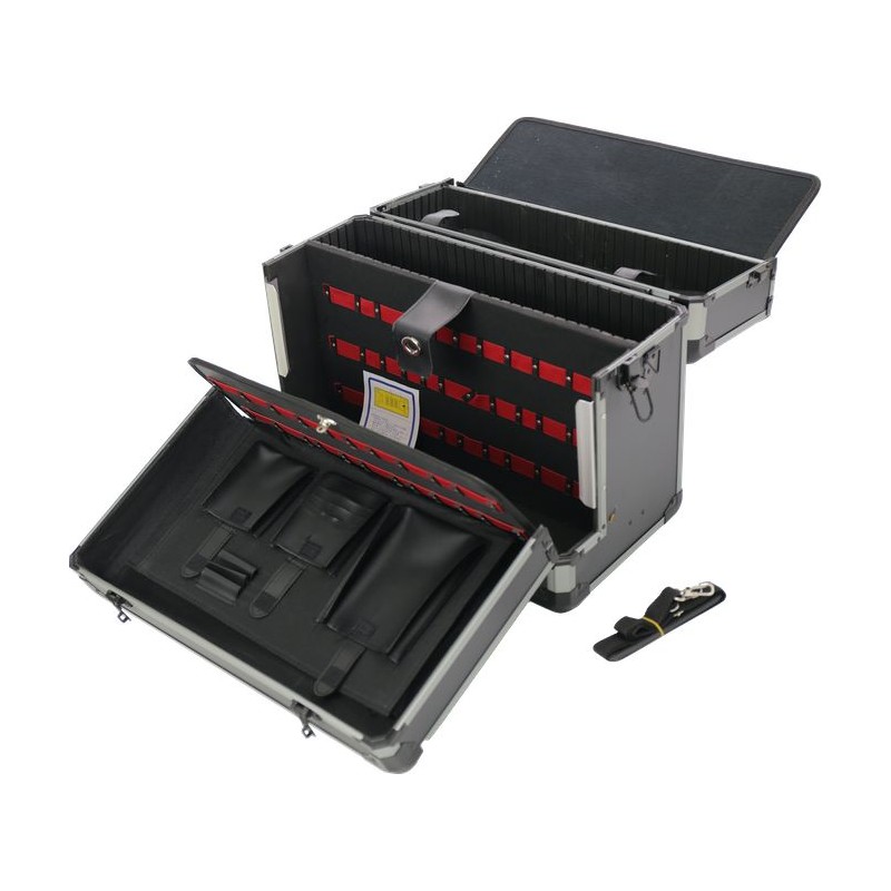 Proponujemy tańszą i jaśniejszą wersję dużej uniwersalnej, aluminiowej walizki serwisowej. Pozwala mieć przy sobie wszystko, co niezbędne do pracy profesjonalisty. Bardzo liczne i pojemne schowki rozmieszczone są w taki sposób, że łatwo do nich dotrzeć, bez potrzeby rozpakowywania całej walizki. Oprócz przegród typowo narzędziowych producent pomyślał również o kieszeni na dokumenty, które za sprawą transportu w walizce pozostaną w idealnym stanie. Dodatkowym zabezpieczeniem są zamki szyfrowe i zwiększające odporność na uderzenia wzmacniane narożniki.