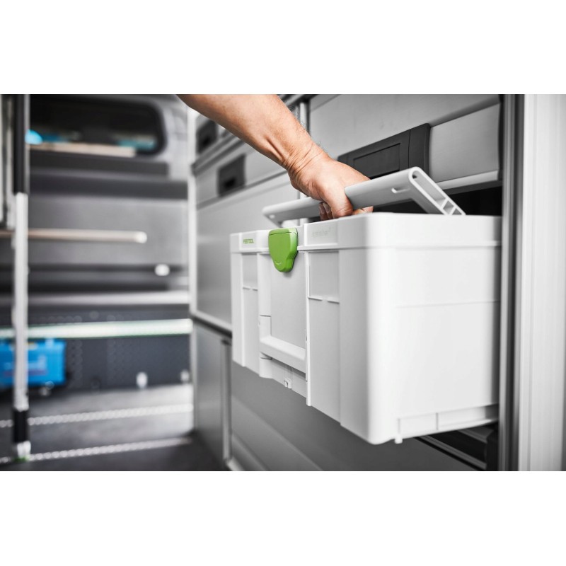 Otwierana na górze, minimalna i zaprojektowana z myślą o wygodnym dostępie do narzędzi ręcznych, materiałów eksploatacyjnych i wyposażenia. Idealnie dopasowane do systemu Systainerów. Skrzynki narzędziowe SYS3 są kompatybilne między sobą i można je łączyć z Systainerami wszystkich generacji, a także odkurzaczami.