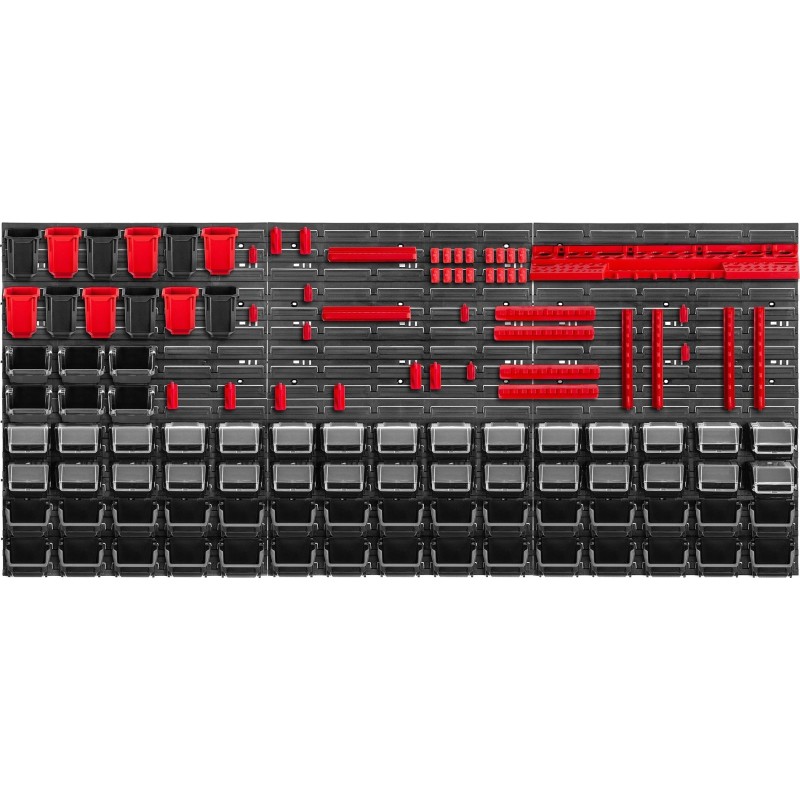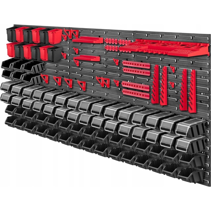 WYGODNE - kuwety magazynowe, półki i uchwyty wystarczy umieścić na tablicy narzędziowej, a następnie wypełnić je akcesoriami. Można ułożyć je w dowolnej konfiguracji.