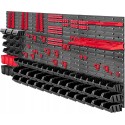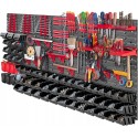 FUNKCJONALNE - kuwety warsztatowe pomieszczą naprawdę sporo elementów drobnicowych i niewielkich narzędzi. Natomiast na uchwytach i półkach powiesisz śrubokręty, klucze, młotki i wiele innych akcesoriów, które chcesz mieć pod ręką.