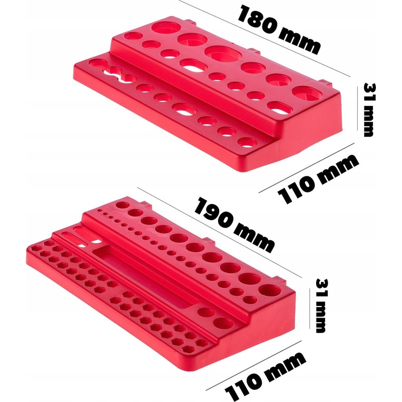 WYGODNE - kuwety magazynowe, półki i uchwyty wystarczy umieścić na tablicy narzędziowej, a następnie wypełnić je akcesoriami. Można ułożyć je w dowolnej konfiguracji.