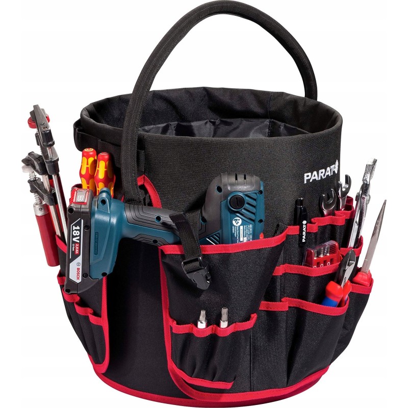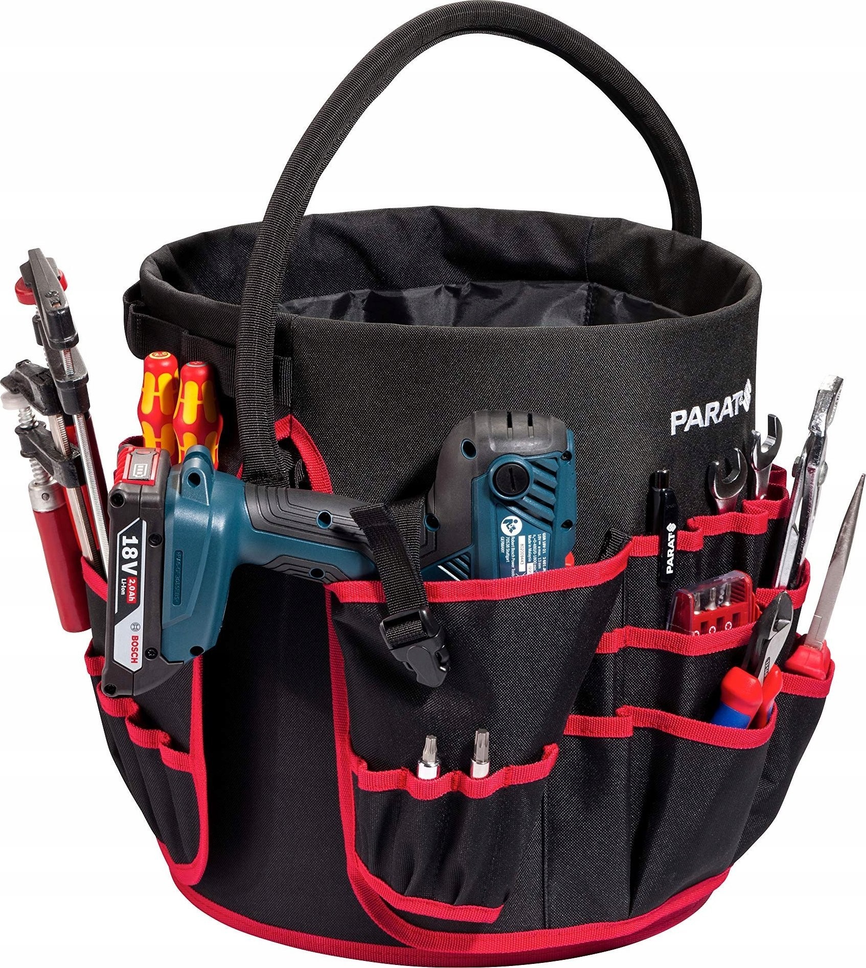 - nazwa przedmiotu: PARAT Basic Tool Bucket torba na narzędzia (ok. 50 narzędzi, kieszenie wewnątrz i na zewnątrz, pasek na ramię) 5990831991, czarna