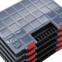 - Przezroczysta pokrywa: przezroczysta pokrywa zapewnia dobrą widoczność zawartości. Dzięki temu możesz z łatwością rozpoznać i znaleźć śruby, nakrętki, gwoździe i inne drobne części.