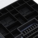 - Ruchome przegródki: walizka asortymentowa posiada regulowane przegródki i można ją podzielić na wiele mniejszych pojemniczków, dzięki czemu wszystkie elementy znajdą się na swoim miejscu.