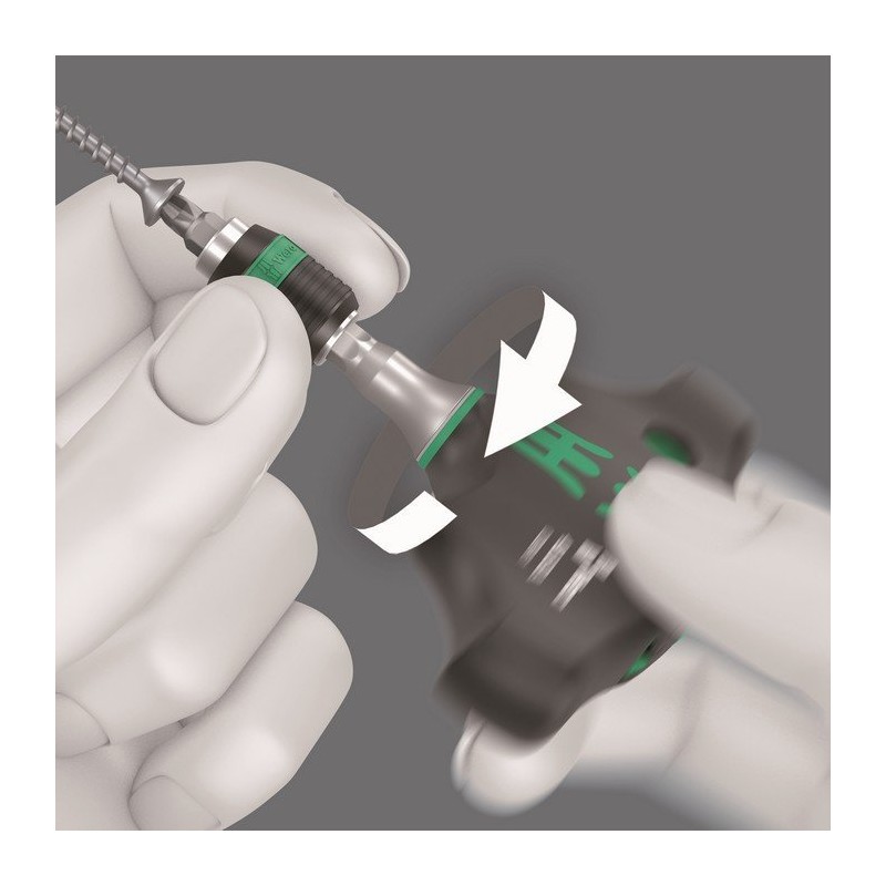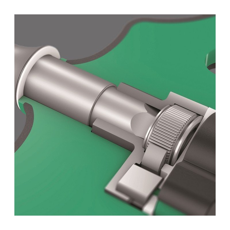 Drobnozębny mechanizm zapadkowy w rękojeści (80 zębów/kąt powrotu zapadki 4,5deg;) umożliwia łatwiejsze i szybsze wkręcanie bez konieczności ponownego nasadzania narzędzia.