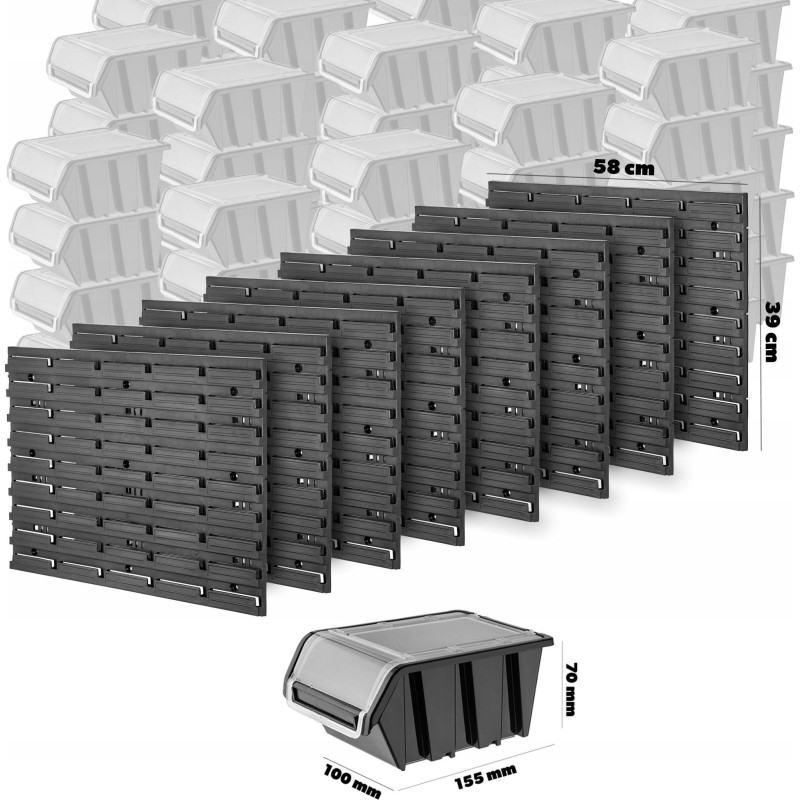 MODUŁOWA BUDOWA – duża tablica narzędziowa ma modułową budowę. Składa się z wielu elementów, które możesz dowolnie konfigurować i rozbudować o kolejne moduły. Uniwersalny rant umożliwia powieszenie zarówno kuwet warsztatowych, półek, jak i wieszaków narzędziowych.