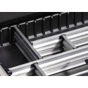 - Stabilna walizka narzędziowa z bogatym wyposażeniem wewnętrznym: łącznie 32 pętle na narzędzia oraz regulowany system aluminiowych separatorów w dolnej części miski