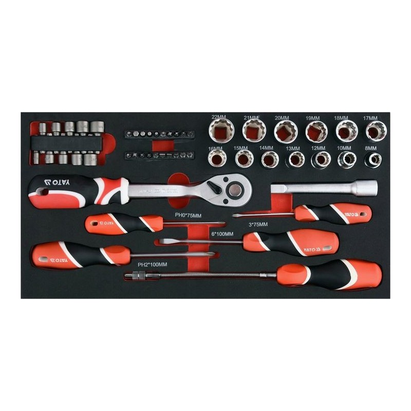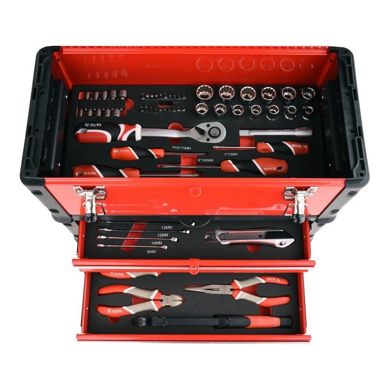 Wózek narzędziony 3-częściowy marki YATO z wyposażeniem 78 elementów.