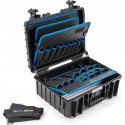- Bardzo trwała walizka na narzędzia marki B&W International z wytrzymałego na wstrząsy polipropylenu (PP): niezniszczalna, możliwość układania w stos, odporna na rozpryski wody, wytrzymała w temperaturze od -30°C do +80°C, nadająca się do lotu dzięki automatycznemu zaworowi wyrównującemu ciśnienie