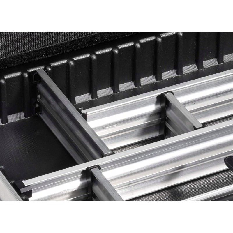 - Stabilna walizka na narzędzia z bogatym wyposażeniem wewnętrznym: łącznie 34 kieszenie na narzędzia i 25 pętli narzędziowych oraz regulowany system aluminiowych separatorów w dolnej tacy
