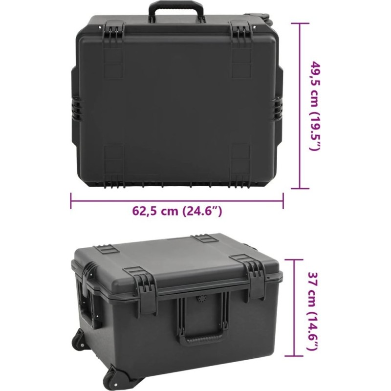 vidaXL Lotnicza walizka narzędziowa, czarna, 62,5x49,5x37 cm, PP