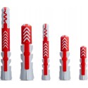 - Zastosowanie: mocne rozporowe kołki nadają się do mocowania lekkich i ciężkich przedmiotów, takich jak ramki, lampy, konsolki, lustra oraz montażu umywalek, półek ścianowych, systemów sanitarnych / ogrzewania / klimatyzacji, mebli łazienkowych i toaletowych oraz okapów kuchennych w różnych materiałach budowlanych, takich jak beton, cegła pełna i perforowana, kamień, gładki i karton-gips, płyty wiórowe, płytka i panele ze sklejki i włókna.