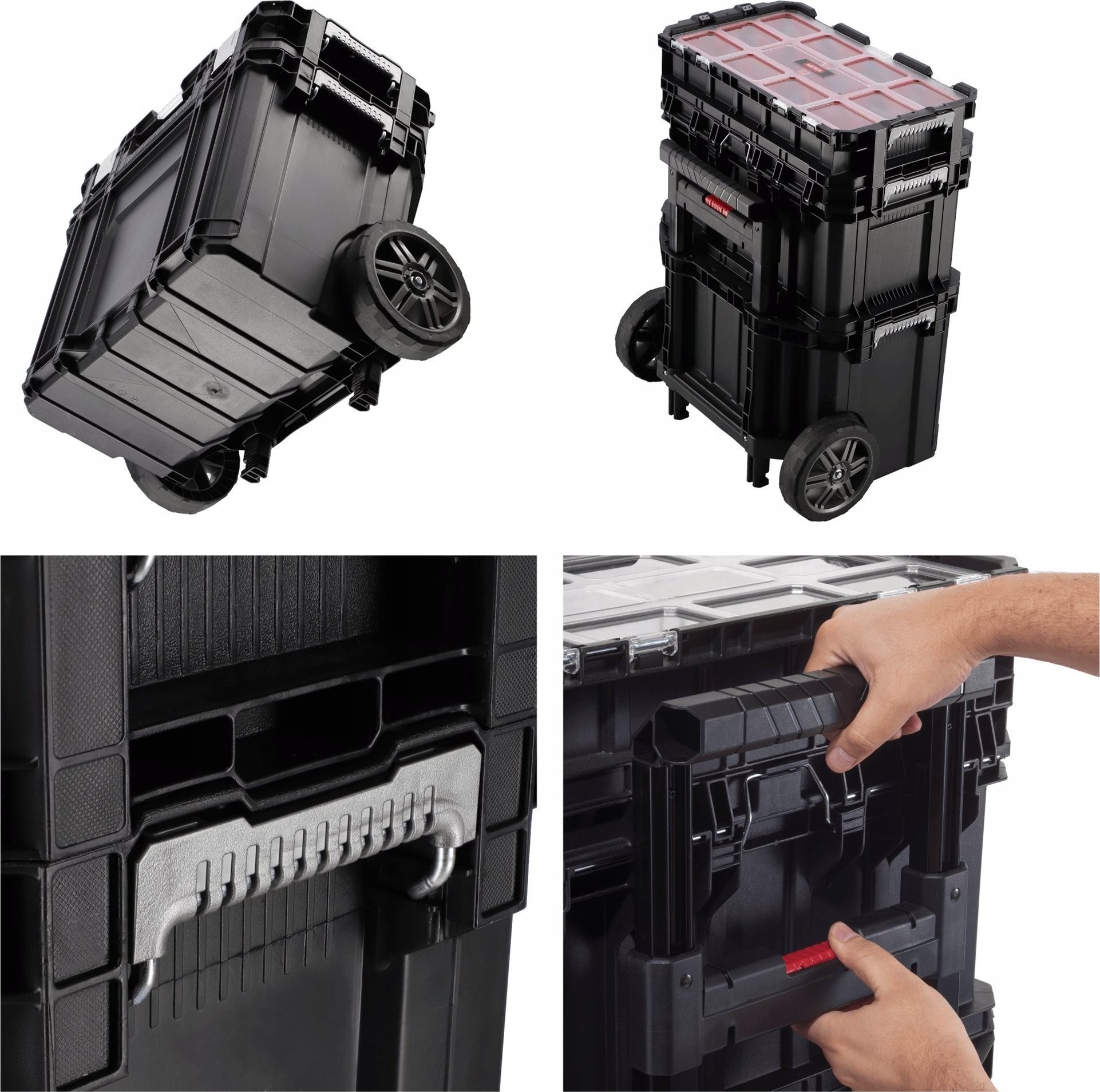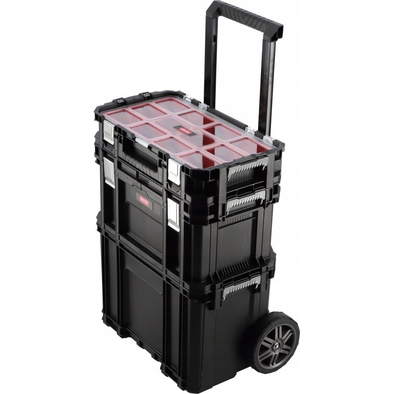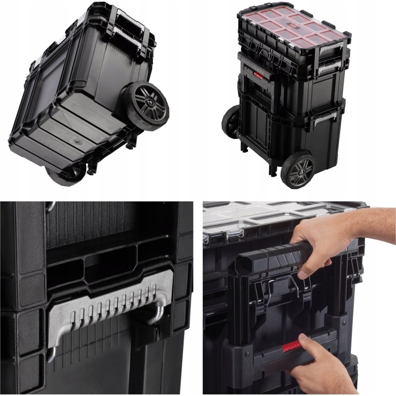 - Modułowy system pozwalający tworzyć różne konfiguracje - skrzynki narzędziowe umożliwiają połączenie przy użyciu wysokiej jakości blokady