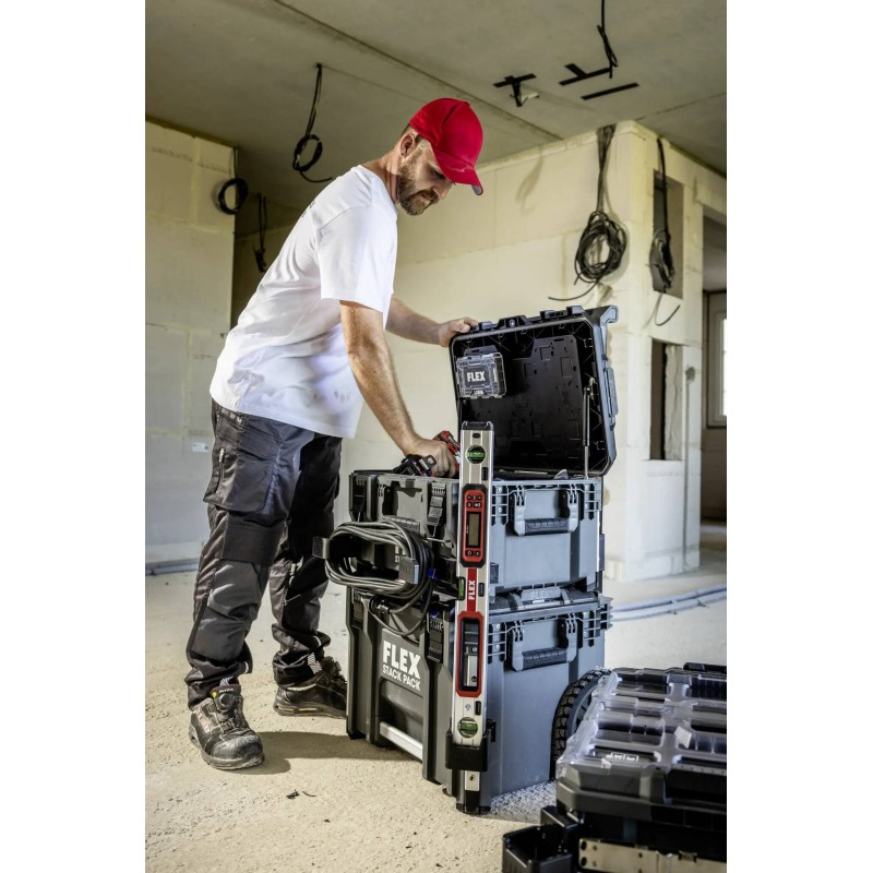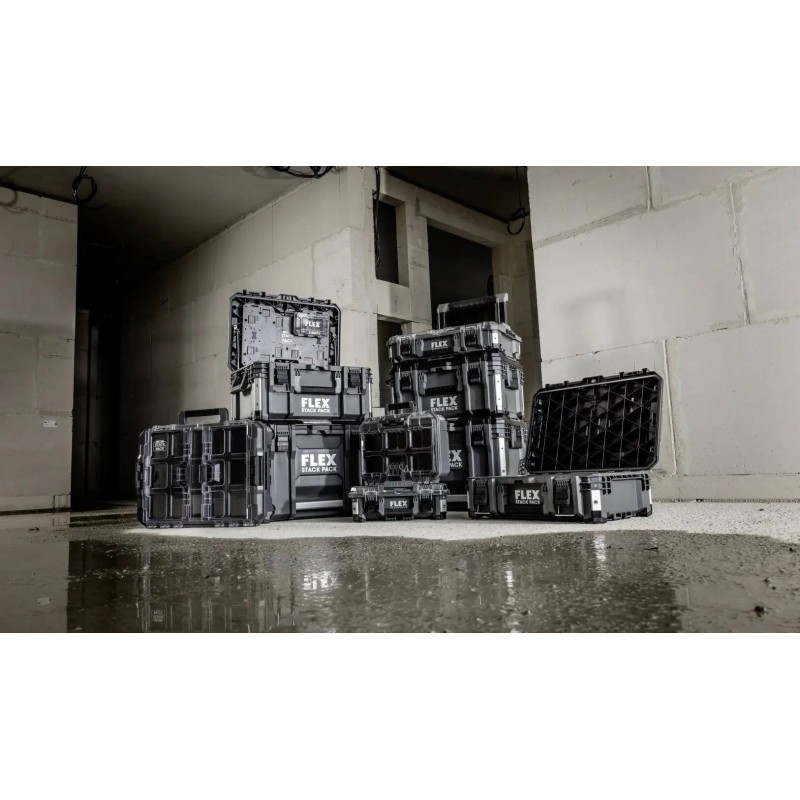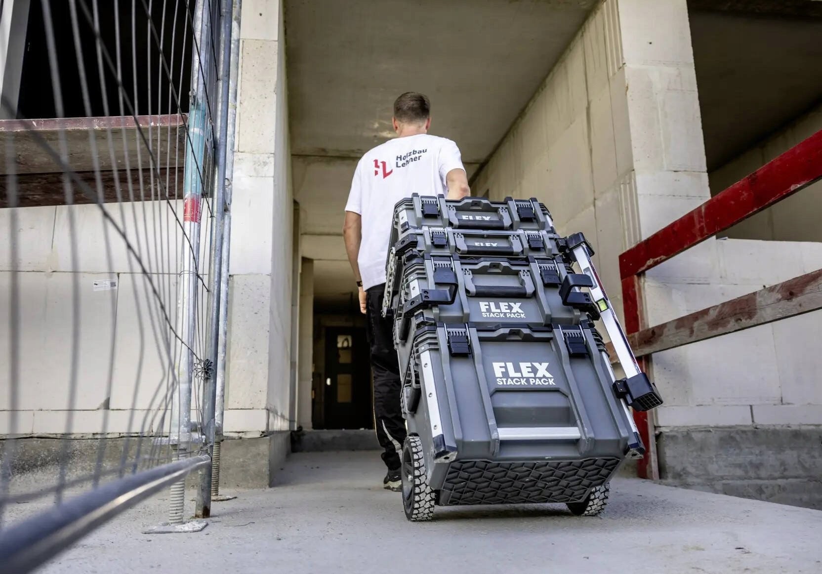Dzięki wytrzymałemu systemowi przechowywania i transportu STACK PACK, narzędzia i akcesoria mogą być łatwo przewożone na plac budowy.