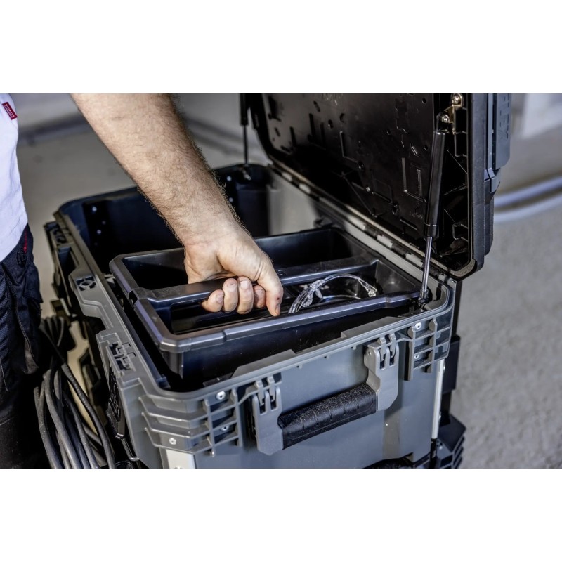 Organizer został wykonany zgodnie z odpowiednią klasą wodoszczelności. Dzięki tej normie, produkt jest odporny na zalania i nie musisz się martwić o uszkodzenie Twoich narzędzi. Wszystko za sprawą zastosowanych odpowiednich systemów uszczelniających lub materiałów. Dzięki tej cesze zabezpieczysz swoją cenną zawartość organizera. Produkty z tą cechą przeznaczone są do pracy w warunkach ekstremalnych - woda czy wilgoć nie są mu straszne.